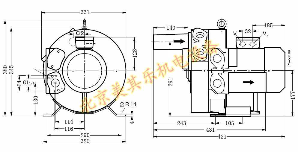 4GH 320/1.5kw高壓鼓風(fēng)機側(cè)面圖