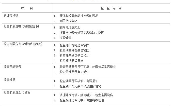 4.風機的定期保養(yǎng):表1、 表2、表3