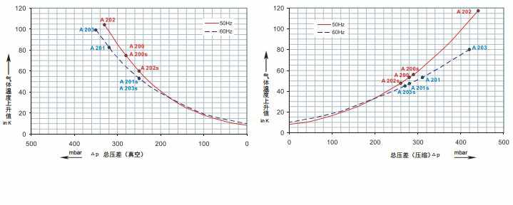 該型號高真空度為負(fù)320mbar,高正壓為420mbar,上圖中橫軸為壓力情況,縱軸為對的某壓力下的溫升情況。