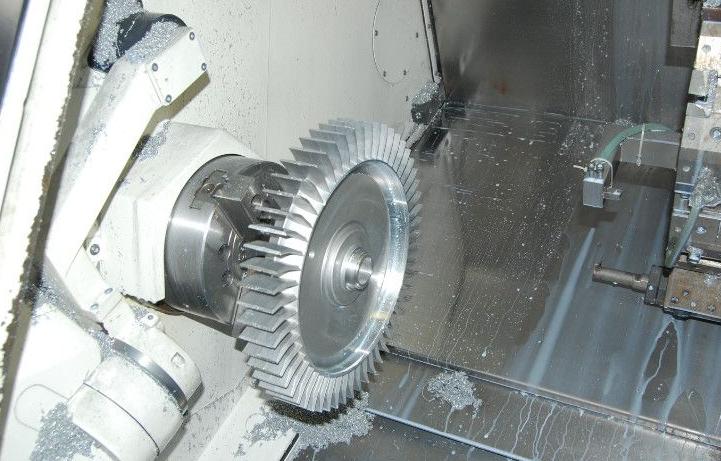 上圖為風(fēng)機葉輪的車床精加工打磨切割