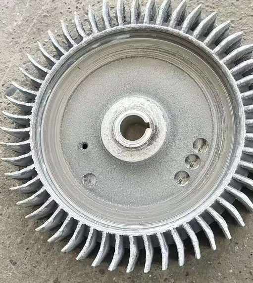 上圖為損壞之后的葉輪圖片,鋁合金材質(zhì)不易焊接,即使修復(fù)好,它的平衡度也被破壞了,會影響到使用壽命。